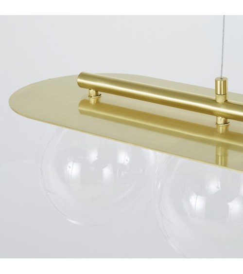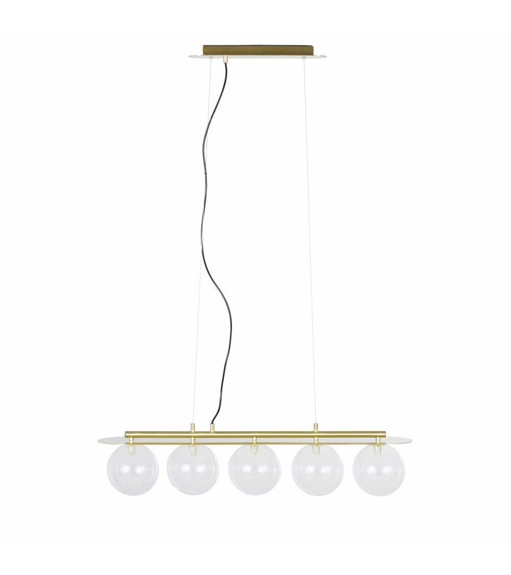 Empreinte de légèreté, la suspension 5 globes en verre et métal doré va vous transporter ! Ce luminaire tendance sera la pièce maîtresse d'une déco qui brillera de mille feux !