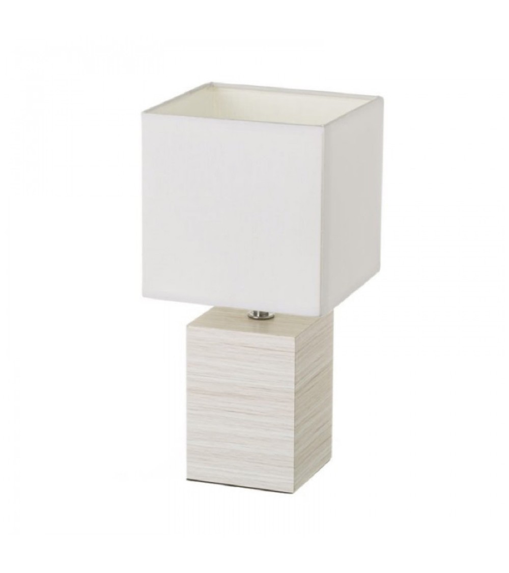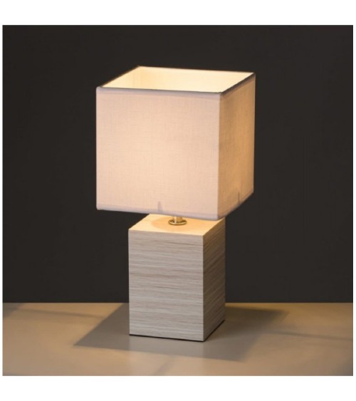 Lampe de chevet ou lampe d'appoint avec base en bois MDF Blanchi et abat-jour blanc. Dimensions: Longueur 16cm x largeur 16cm x Hauteur 33cm - Couleur: Blanc Matière: Bois et Lin - Ampoule: E14 / 40W (non fournie) - Longueur Câble: 150cm