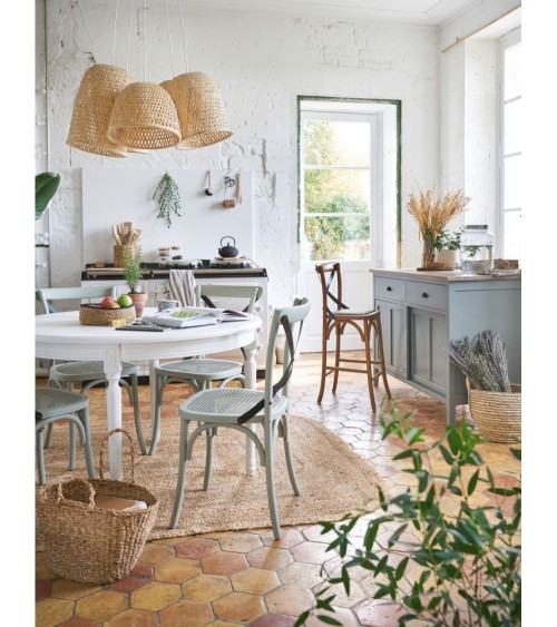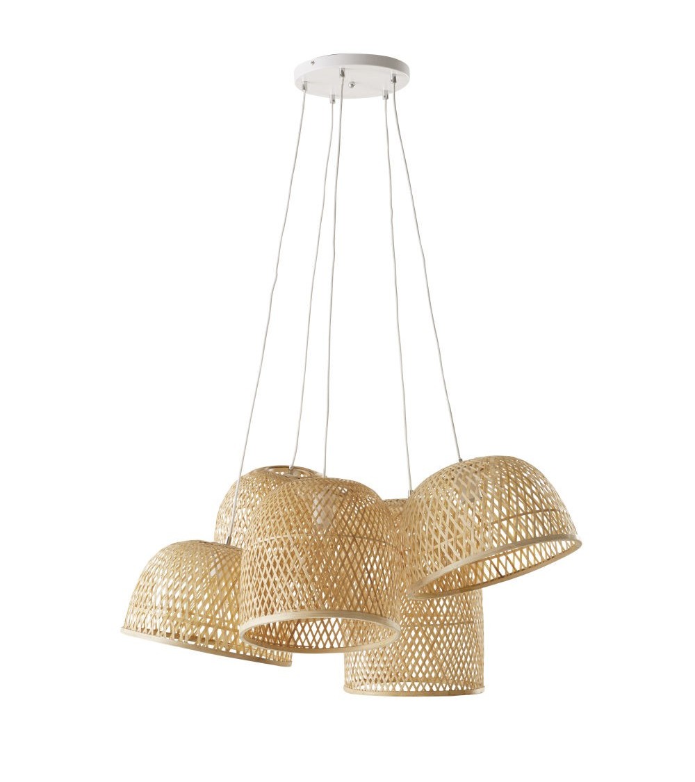 Pour une maison en bord de mer, ou un appartement citadin qui a lui aussi le droit à son ambiance estivale, optez pour cette suspension grappe 5 abat-jour en bambou tressé CAICOS. Vous allez adorer ses abat-jours de formes différentes qui viendront égayer votre intérieur d'une lumière douce et apaisante. Composée de bambou tressé et de métal blanc, cette suspension apportera un brin de nature et de chaleur à votre petit cocon. Que diriez-vous de l'associer à un buffet en bois blanchi ainsi qu'à un tapis en jute pour une ambiance plage aux notes naturelles ? Ce luminaire se satisfera pleinement d'une place au-dessus de votre table de séjour brute, dans votre cuisine immaculée ou dans votre chambre à coucher !