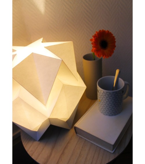La lampe de table HIKARI marrie la technique japonaise d'Origami aux lignes géométriques et épurées du style scandinave pour apporter une ambiance chaleureuse à votre maison. Cette lampe de table trouvera facilement sa place partout où vous souhaitez créer une atmosphère paisible, confortable et relaxante. Cela vous aidera à ajouter de la douceur, de la légèreté et de la subtilité à votre intérieur. Entre lanterne et lampe sophistiquée, la forme et les matériaux utilisés permettent à la lumière de se diffuser de manière douce et apaisante, propice à la détente. Les lampes de table HIKARI sont faites en PAPIER de haute qualité, sans acides, produit en France avec des fibres végétales issues de lexploitation responsables des forêts (labelle FSC®). Le papier, matériau recyclage par excellence, correspond entièrement à notre démarche de développement durable ! Et cest exactement pour cette raison que notre papier nest pas traité anti-feu ou imperméabilisé. Ces traitements empêchent le recyclage à 100% du papier et sont très nocifs. Lutilisation de ce genre de produits chimiques est contraire à notre philosophie et engagement pour lenvironnement.Le câble électrique est inclus et vous le recevrez déjà installé dans la lampe. Les lampes de table HIKARI sont à utiliser uniquement avec des ampoules LED. Douille E27. Lampoule nest pas fournie.Vous recevez le luminaire HIKARI déjà monté et prêt à être installé avec des instructions. Le luminaire est conçu pour être utilisé avec une ampoule ampoule LED. Nos luminaires origami sont très faciles à nettoyer. Vous pouvez utiliser soit un plumeau ou de l'air comprimé, dès qu'à partir d'au moins 30 cm de distance.