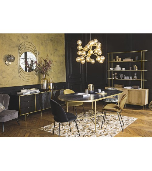 Vous avez envie d'une touche chic et glamour dans votre intérieur ? La suspension multi-globes en verre ambré et métal doré ROSEWELL ne manquera pas de vous combler ! Ce luminaire porte une multitude de grappes en verre ambré guidées par ses tiges en métal assorties à la finition étincelante. Grâce à son verre ambré, il créera une ambiance rétro chaleureuse et raffinée dans votre jolie demeure. On l'imagine éclairer une jolie table basse en verre et métal doré aux côtés d'un fauteuil vintage en velours ocre. Cette suspension n'attend plus que vous !