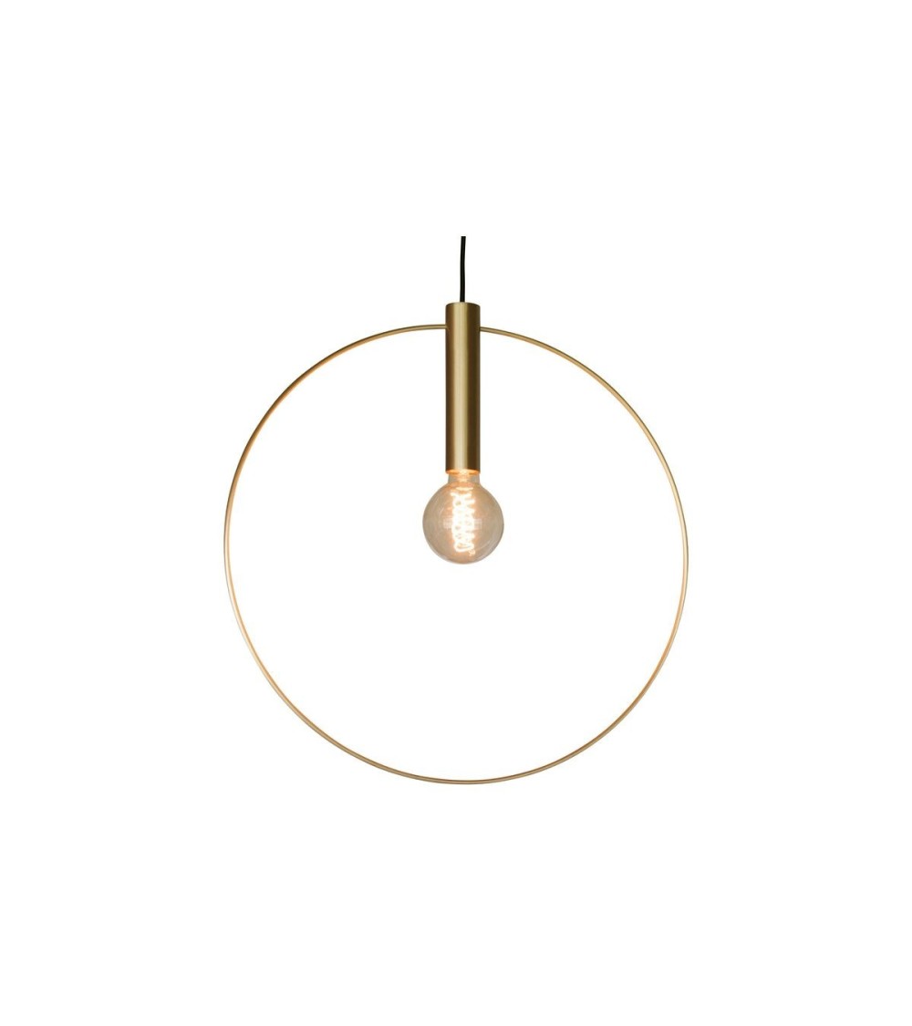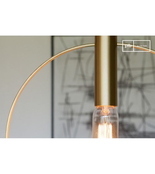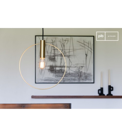 Ce produit vous est proposé par la marque pib. Une suspension fine, graphique et moderniste. Dotée d'une petite couronne en laiton brossé qui enlace l'ampoule, la suspension dorée Oohalt n'a pas peur de montrer pas son caractère vif et excentrique. Agile et soignée, elle est pour quelqu'un l'image d'un électron et de son atome, pour quelqu'un d'autre une planète qui tourne autour de son étoile comme la Terre et son Soleil. Très chic, elle camoufle génialement ses têtes de vis à l'aide de caches en laiton d'une tresse textile noire qui accompagne le câble d'alimentation. Offrez-lui une ampoule déco et son sourire s'illuminera.