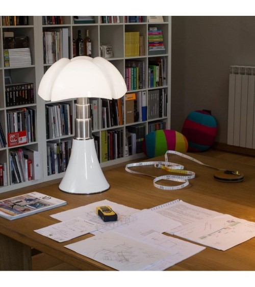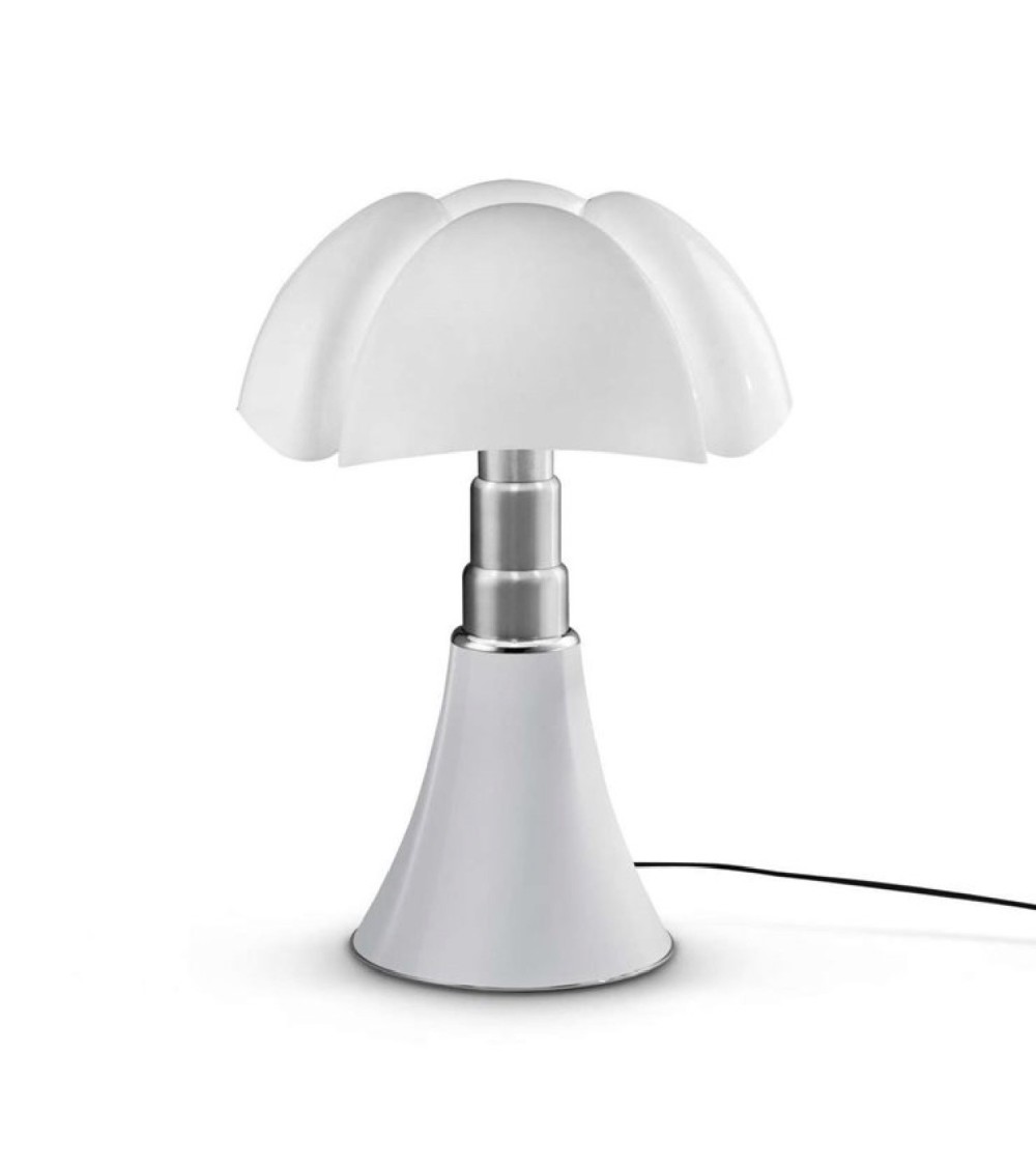 La seule et l'unique, voici la madeleine de Proust des luminaires : la lampe Pipistrello ! Laissez-nous vous présenter cette lampe design Pipistrello en version Medium : cette lampe de table ou de sol à LED intégrée (écologique, économique et plus performante), est composée d'une base tulipée en métal, d'un bras en acier inoxydable brossé télescopique (50 à 62 cm) et d'un diffuseur en méthacrylate blanc opalin. Design oui, mais modulable également, la Pipistrello Medium est équipée d'un câble d'alimentation avec un variateur d'intensité lumineuse (dimmer).Née en 1965, la chauve-souris italienne est l'uvre de la célèbre designer et architecte Gae Aulenti. Cette lampe, star du design contemporain, est devenue une véritable référence dans l'univers du luminaire et elle continue encore aujourd'hui de faire chavirer nos curs d'illuminés. Noir*, Blanc, Laiton ou Vert Agave, vous avez le choix de la couleur pour pimper votre intérieur ! Craquez également pour notre nouveau coloris exclusif aux notes d'été : Sable Doré. Un coloris développé en exclusivité par Martinelli Luce pour LightOnline et disponible sur les trois formats : Grande, Medium et Mini. *Noir (ou appellation d'origine Testa Di Moro) est un marron très foncé tirant vers le noir. Cette lampe est une authentique Pipistrello par Martinelli Luce. Elle sera livrée avec un certificat d'authenticité Martinelli Luce (cf. photos).Module LED : 9W LED (intégrées) - 850 Lumens (plus il y a de lumens, plus l'éclairage est puissant) - 2700°K (couleur blanc chaud)