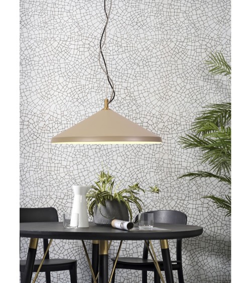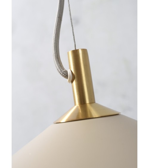 La suspension Montreux respire l'élégance de la belle époque. Abat-jour en aluminium (dia. 60cm x 24cm) disponible en sable ou noir. Avec des détails dorés et une doublure intérieure blanche pour une lumière plus vive. Réglable en hauteur jusqu'à un maximum de 3,5 m. Est suspendu avec du fil d'acier et du fil textile. Peut être accroché à un point électrique ou tout autre point à l'aide du support de câble fourni. Montreux est une station balnéaire suisse au pied des Alpes et au bord du lac Léman. La ville est une destination de vacances en été, tandis que les visiteurs aiment skier dans les montagnes voisines en hiver. C'est l'endroit idéal pour se ressourcer, avec une douceur de vivre et de beaux édifices Belle Époque le long de la promenade fleurie.