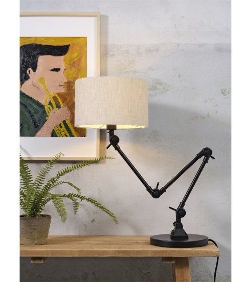 Lampe de table noire flexible et abat-jour gris clair H100cm