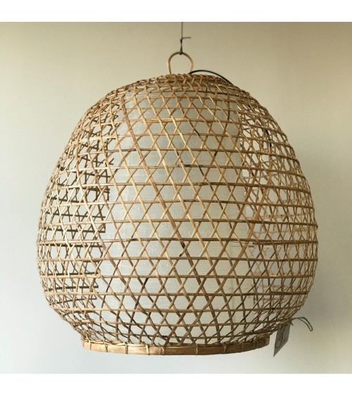 Le bambou torsadé représente un véritable travail artistique pour cette suspension design de forme arrondie. Ses courbes s'adapteront parfaitement à votre intérieur ou à votre extérieur.Un travail long et minutieux à la main pour la réalisation de ce lustre. Composé d'un abat-jour en fibre de couleur blanc cassé pour cacher l'ampoule et pour utiliser la suspension en extérieur sans problème.Une lampe que vous garderez longtemps chez vous !