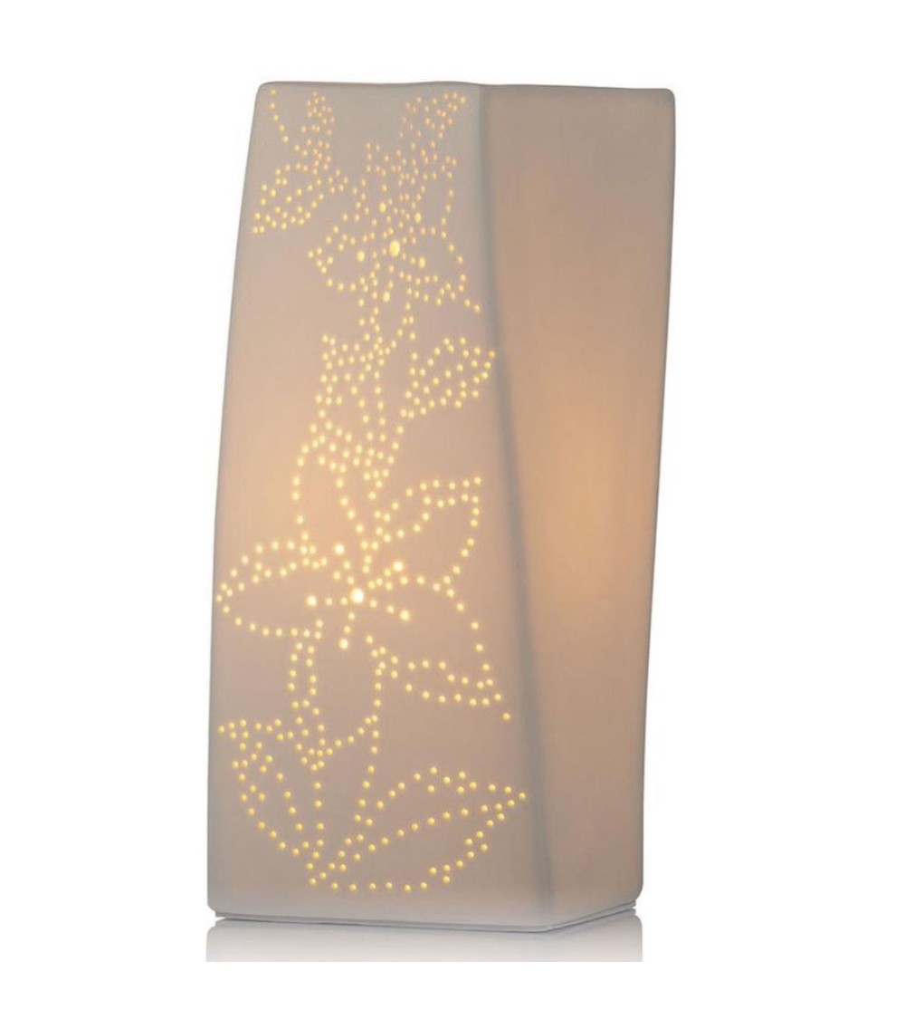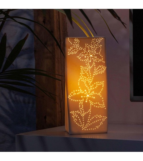 Lampe à poser blanche Ellipse fleurie En porcelaine haute qualité Dim : 28 x 12 x 12 cm Fonctionne sur secteur, prise Européenne Ampoule E14 - 220-240V, 50 Hz non comprise