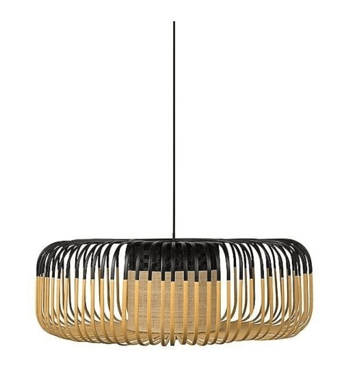 Suspension de grand format (XL) de la collection Bamboo, composée d'un diffuseur cylindrique en fibres naturelles tressées, d'un abat-jour bombé en tiges de bambou à la couleur naturelle et d'un câble de suspension équipé d'une rosace époxy noire.Cette suspension aux accents naturels et contemporains a été imaginée par le célèbre Arik Levy, designer talentueux et prolifique qui signe ici un modèle élégant aux finitions soignées. La collection Bamboo est disponible en différents coloris et diamètres.Ampoule : 1x60W E27 (non fournie).