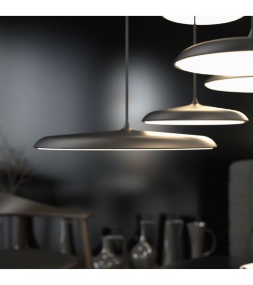Suspension LED de la collection Artist éditée par Design For The People composée d'une rosace de plafond, d'un cordon d'alimentation gainé de textile (L 300cm) et d'un abat-jour métallique agrémenté d'un diffuseur en polypropylène.Dessinée par Bønnelycke MDD, la collection de suspension LED Artist s'inspire du monde musical et ressemble à la cymbale d'une batterie. Cette collection se décline en différentes finitions.Artist est compatible avec l'utilisation d'un variateur d'intensité lumineuse.LED : 24X - 1460 lm - 2700K° (intégrées).