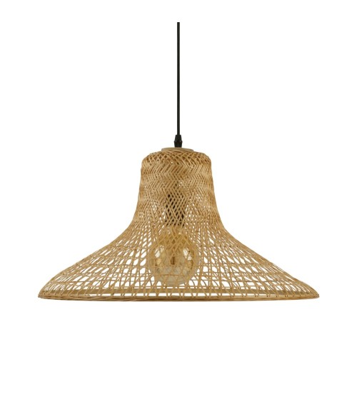 Poids : 0.5kg Dimensions: - Diamètre : 50 cm- Hauteur : 26 cm- Longeur du fil : 1.5 mEntretien : Utiliser la brosse douce d'un aspirateur ou un chiffon pour ôter régulièrement la poussière.Materiaux : Bambou + métalMontage : Livré montéInformations : Ampoule adaptée non incluse : E27 - puissance maximale 40 watt?Ajustable en hauteurInformations colis : 52 x 53 x 32 cm