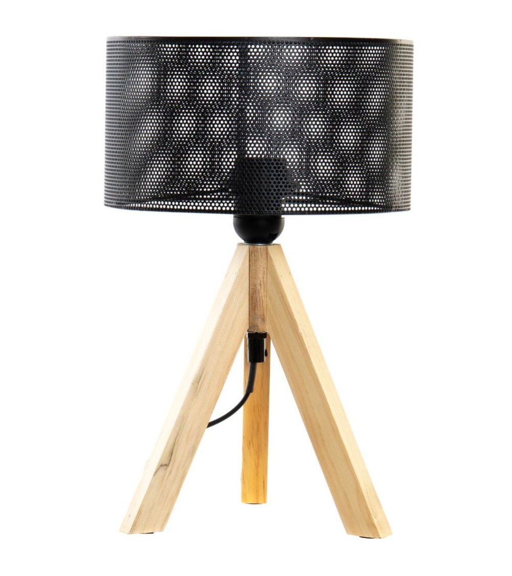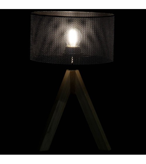 Lampe rétro en métal et bois 35 cm Métal et bois Beige et noir Hauteur 35 cm - Diamètre 22 cm 220-240v &ndash 50hz E27 max 40 w Ampoule non Incluse