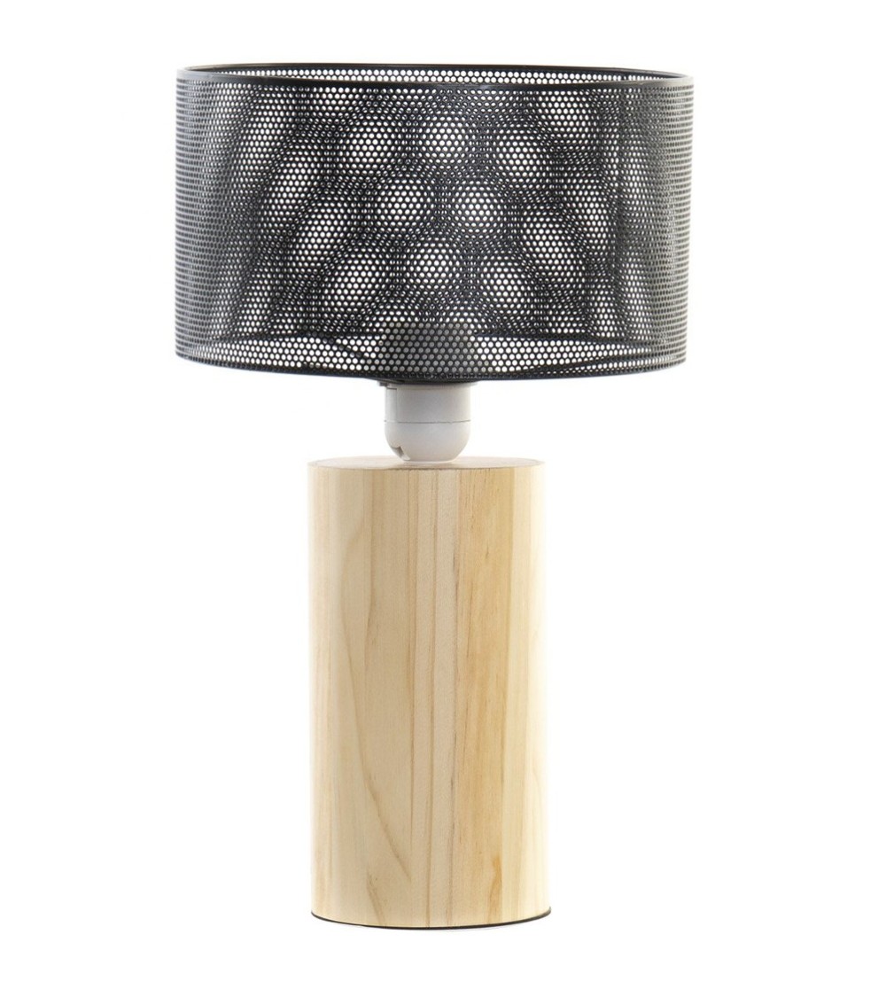Lampe rétro en métal et bois 39.5 cm Métal et bois Beige et noir Hauteur 34 cm - Diamètre 22 cm 220-240v &ndash 50hz E27 max 40 w Ampoule non Incluse