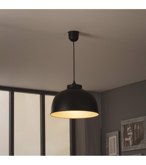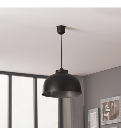 Suspension, forme dôme, composée d'une structure en métal avec intérieur effet argenté.Cette suspension est livrée avec cordelière électrique. Ampoule : 1x60W E27 max halogène éco (non fournie).
