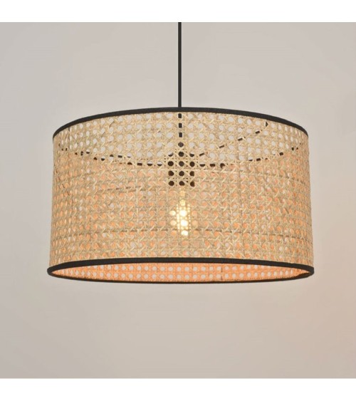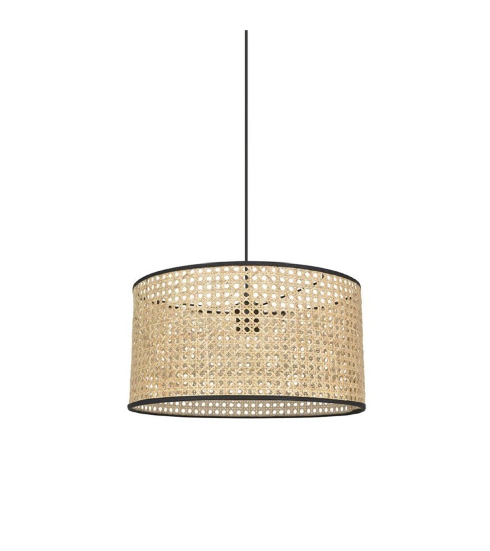 Suspension de la collection kenna éditée par corep composée d'une rosace de plafond et d'un cordon d'alimentation de coloris noir supportant un abat-jour cylindrique habillé de cannage et rehaussé de ganses noires.Raffinée et très tendance, cette suspension fera une entréeremarquée ans votre intérieur.Ampoule : 100W max - E27 (non fournie).
