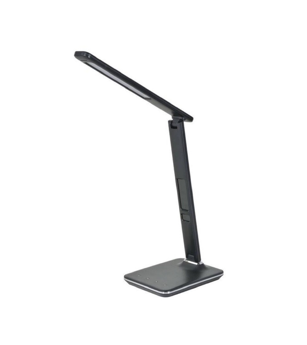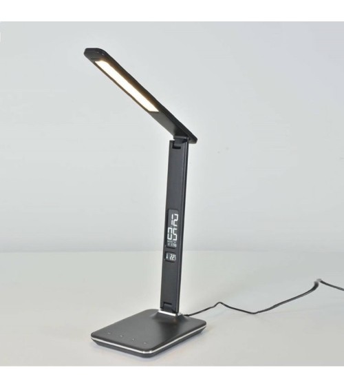 Lampe de bureau multifonction composée d'une base rectangulaire équipée d'un interrupteur tactile (3 niveaux d'intensité), d'un bras inclinable et d'un diffuseur orientable de forme rectangulaire agrémenté d'un diffuseur en polycarbonate opalin, l'ensemble est réalisé en abs dans une finition effet cuir.Cette lampe de bureau au style futuriste offre de nombreuses possibililés : vous pouvez choisir sa température de couleur du chaud (3000K°) au plus froid (6000K°). Son écran vertical vous renseigne sur l'heure, la date et la température ambiante et elle est équipée d'une prise USB pour recharger votre téléphone.LED : 12W LED - 350 Lumens - 3000 à 6000K° (intégrées).