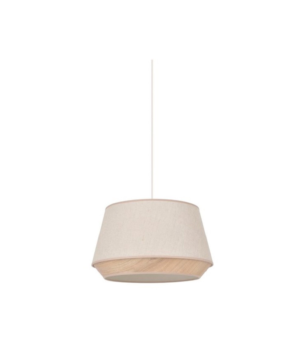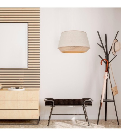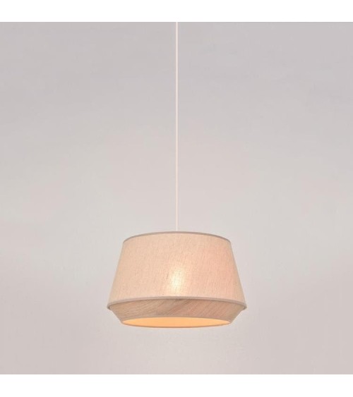 Suspension Sir de la collection Sir éditée par Corep. Elle se compose d'un câble d'alimentation PVC et d'un diffuseur en coton avec décoration effet bois. Ce luminaire est aussi épuré que élégant. Ampoule : 1x100W - E27 (non fournie)