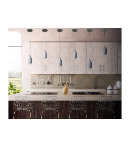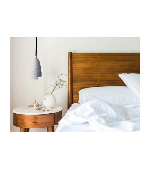 La lampe suspension Flanelle en béton de la marque écoresponsable Gone's est fabriquée France.C'est une délicate alliance de la rudesse d'un matériau brut avec la représentation d'un ruban de tissu. Un luminaire de qualité made in France pour une décoration originale. Version accessoires en métal perle noire, fil textile noir.