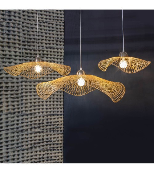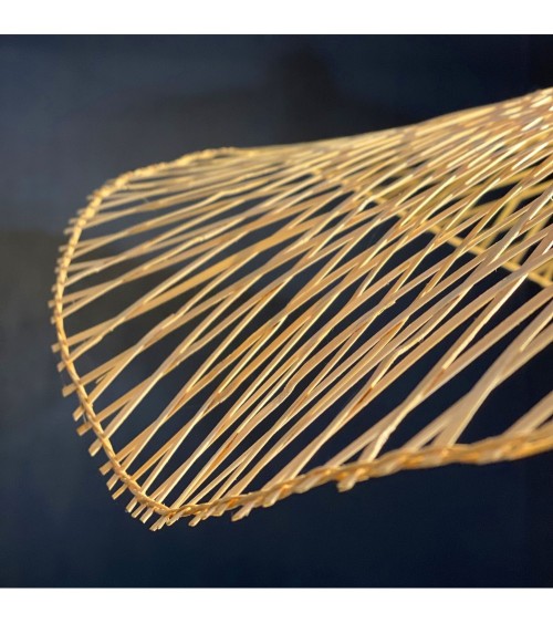Coup de cur déco pour cet abat-jour en bambou, elle est aérienne, légère et tellement jolie ! Cette suspension et sa jolie couleur bois naturel est si beau qu'il trouvera sa place dans tout type de décoration intérieure et pour toutes les pièces de la maison. Description : Suspension en bambou. Livrée non montée. Ampoule : Type : E27 Incluse : Non Base : Couleur : inox Dimensions :10 x 2.5 cm cable : plastique blanc longueur : 130 cm Dimensions : Ø 100 cm Autres détails : Poids net unitaire : 0.53kg Tension : 230 v Puissance : 40 w Suspension en bambou tressé Dimensions du colis : 101 x 101 x 14 cm Poids du colis : 3.65 kg Nettoyer à l'aide d'un chiffon sec