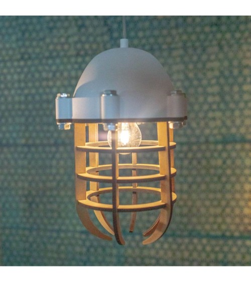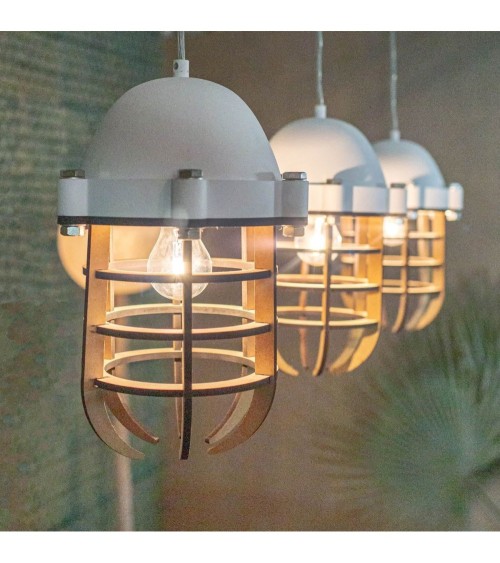 Très tendance, cette suspension en métal blanc révèlera le côté industriel et urbain de votre décoration. Cette pièce apportera une touche de modernité et d'originalité à votre intérieur. Bois et métal blanc: longeur max. cable 120cm Utiliser un chiffon humide