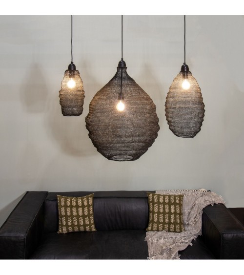 Envie d'une déco chic et contemporaine ? Craquez pour la suspension en métal filaire noir SPIRIT, qui apportera une douce lumière lors de vos soirées, mais pas que ! Elle vous charmera aussi par ses courbes minimalistes et ses inspirations ethniques. Fixée dans votre salon ou votre chambre, cette suspension deviendra vite la pièce déco indispensable pour une ambiance chaleureuse réussie. La collection SPIRIT existe également en doré et dans d'autres tailles. Suspension ovale en métal filaire noir SPIRIT DIM : D29xH58cm Ampoule E27-220V -40W longueur cable electrique 1,5m Poids : 1.49 kgs Nettoyer à l'aide d'un chiffon sec