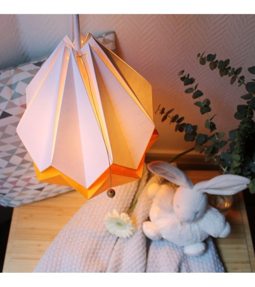 La suspension HANAHI est inspirée des techniques de l'origami et apporte de la légèreté à votre espace. Cet abat-jour aux lignes géométriques douces se combine parfaitement avec différents styles et atmosphères.Cette belle suspension pliée à la main trouvera facilement sa place dans un salon ou dans nimporte quelle pièce avec une belle hauteur sous plafond. Cela vous aidera à créer une atmosphère chaleureuse et confortable. Nos suspensions HANAHI sont faites en PAPIER de haute qualité, sans acides, produit en France avec des fibres végétales issues de lexploitation responsables des forêts (labelle FSC®).Le papier, matériau recyclage par excellence, correspond entièrement à notre démarche de développement durable ! Et cest exactement pour cette raison que notre papier nest pas traité anti-feu ou imperméabilisé. Ces traitements empêchent le recyclage à 100% du papier et sont très nocifs. Lutilisation de ce genre de produits chimiques est contraire à notre philosophie et engagement pour lenvironnement. Nos suspensions en papier sont à utiliser à lintérieur et de préférence dans des pièces peu humides. Et surtout uniquement avec des ampoules LED. Le câble électrique n'est pas fourni avec la suspension. Les suspensions Hanahi sont à utiliser uniquement avec des ampoules LED. Douille E27. Lampoule nest pas fournie.Vous recevez le luminaire HANAHI déjà monté et prêt à être installé avec des instructions. Le luminaire est conçu pour être utilisé avec une ampoule LED. Nos luminaires origami sont très faciles à nettoyer. Vous pouvez utiliser soit un plumeau ou de l'air comprimé, dès qu'à partir d'au moins 30 cm de distance.