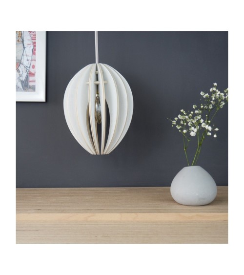 La lampe Fève suspension frêne blanc de Gone's, marque décorative écoresponsable, est entièrement conçue et fabriquée en France, à partir de bois nobles de qualité ébénisterie. Dans un style design scandinave, ce luminaire diffusera une lumière apaisante. La Fève révèle la qualité du made in France avec une grande originalité. Cordon textile blanc. Pavillon en béton écologique.