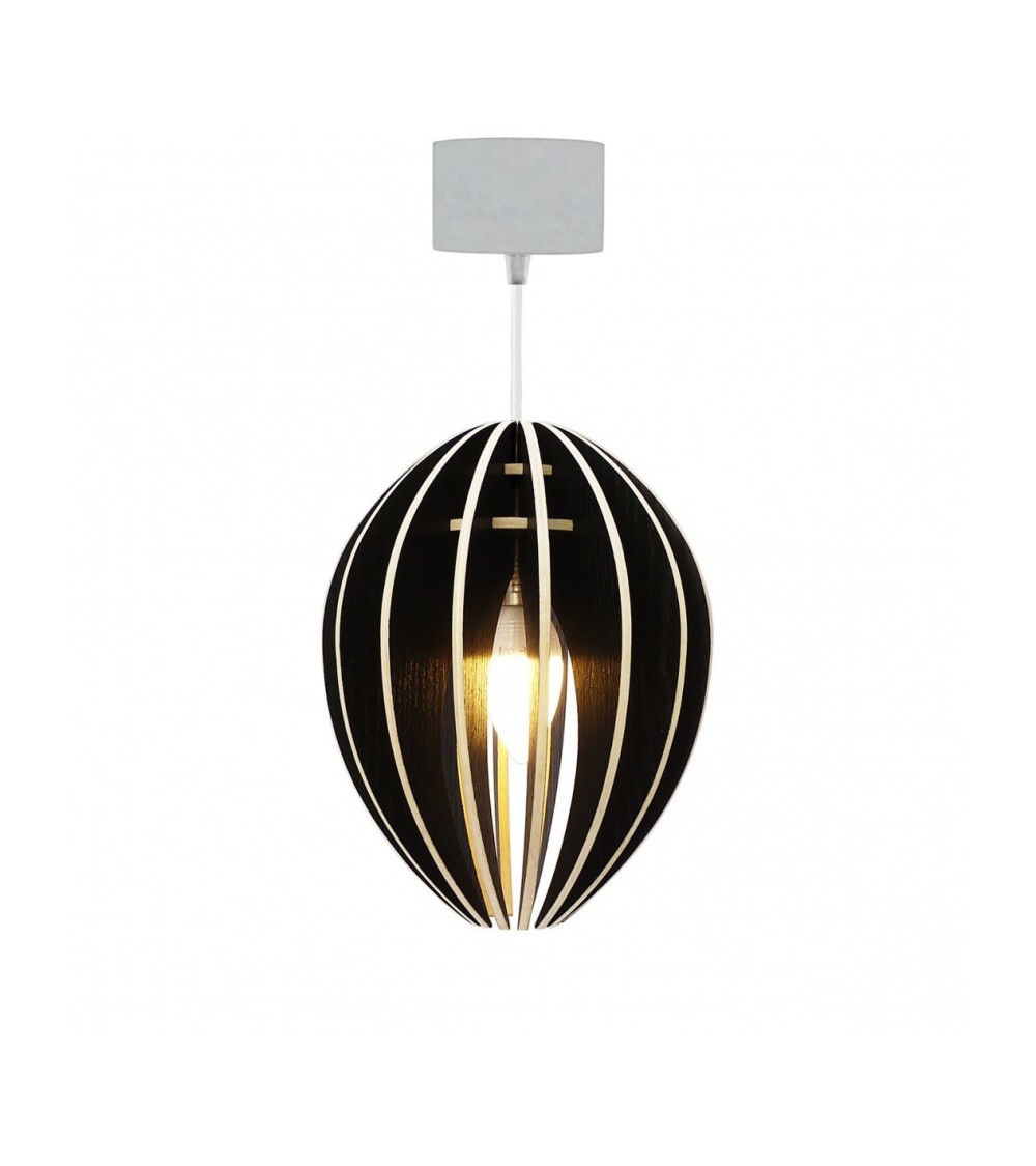 Lampe suspension bois et béton frêne teinté noir cordon blanc