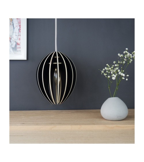 La lampe Fève suspension frêne noir de Gone's, marque décorative écoresponsable, est entièrement conçue et fabriquée en France, à partir de bois nobles de qualité ébénisterie. Dans un style design scandinave, ce luminaire diffusera une lumière apaisante. La Fève révèle la qualité du made in France avec une grande originalité. Cordon textile blanc. Pavillon en béton écologique.