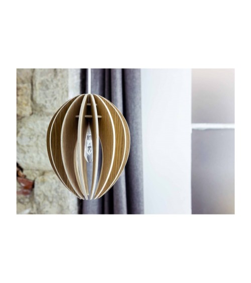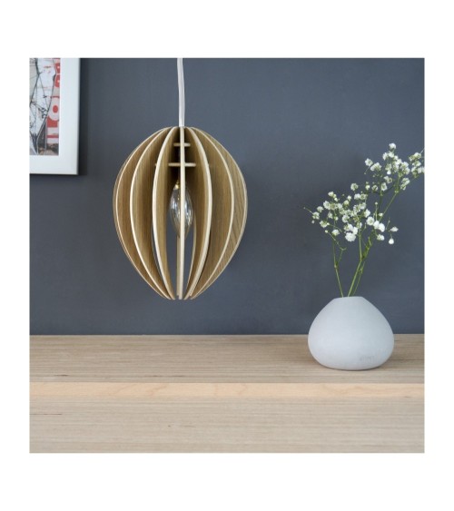 La lampe Fève suspension chêne de Gone's, marque décorative écoresponsable, est entièrement conçue et fabriquée en France, à partir de bois nobles de qualité ébénisterie. Dans un style design scandinave, ce luminaire diffusera une lumière apaisante. La Fève révèle la qualité du made in France avec une grande originalité. Cordon textile blanc. Pavillon en béton écologique.
