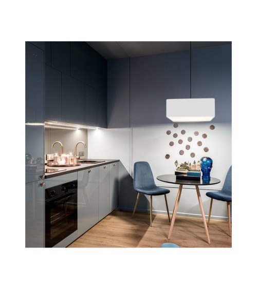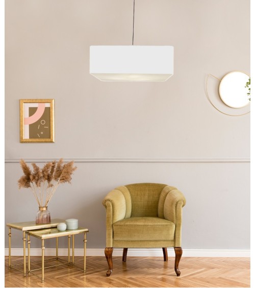 Produits à usage professionnels et particuliers. La Suspension Carré Carlito est un lustre élégant avec un abat-jour carré de 50cm aux coins arrondis. Elle est équipée d'un système de 3 douilles E27 horizontales et d'un cordon d'alimentation de 100cm qui peut être ajusté en hauteur. La lampe est également fournie avec une platine en métal et un diffuseur pour créer une ambiance de lumière douce et chaleureuse. Idéale pour une chambre ou un salon, cette suspension au design tendance ajoute une touche élégante à la décoration de tout espace.