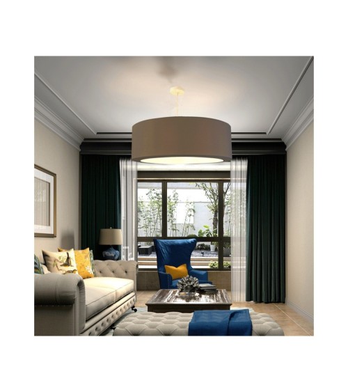 Produits à usage professionnels et particuliers. La Suspension Silvio est une suspension élégante avec un abat-jour rond de 65cm de diamètre et 25cm de hauteur, doté d'un retour de 5cm en bas pour ajouter une touche de sophistication. Elle utilise une douille E27 en position verticale et est fournie avec un cordon d'alimentation de 100cm ajustable en hauteur et une platine en métal. Cette suspension au design tendance et moderne est idéale pour les salons ou les chambres, avec un usage intérieur et un style intemporel qui ajoute une touche de sophistication à votre décoration intérieure. Fabriqué en France avec du tissus classé NF pour une sécurité optimale