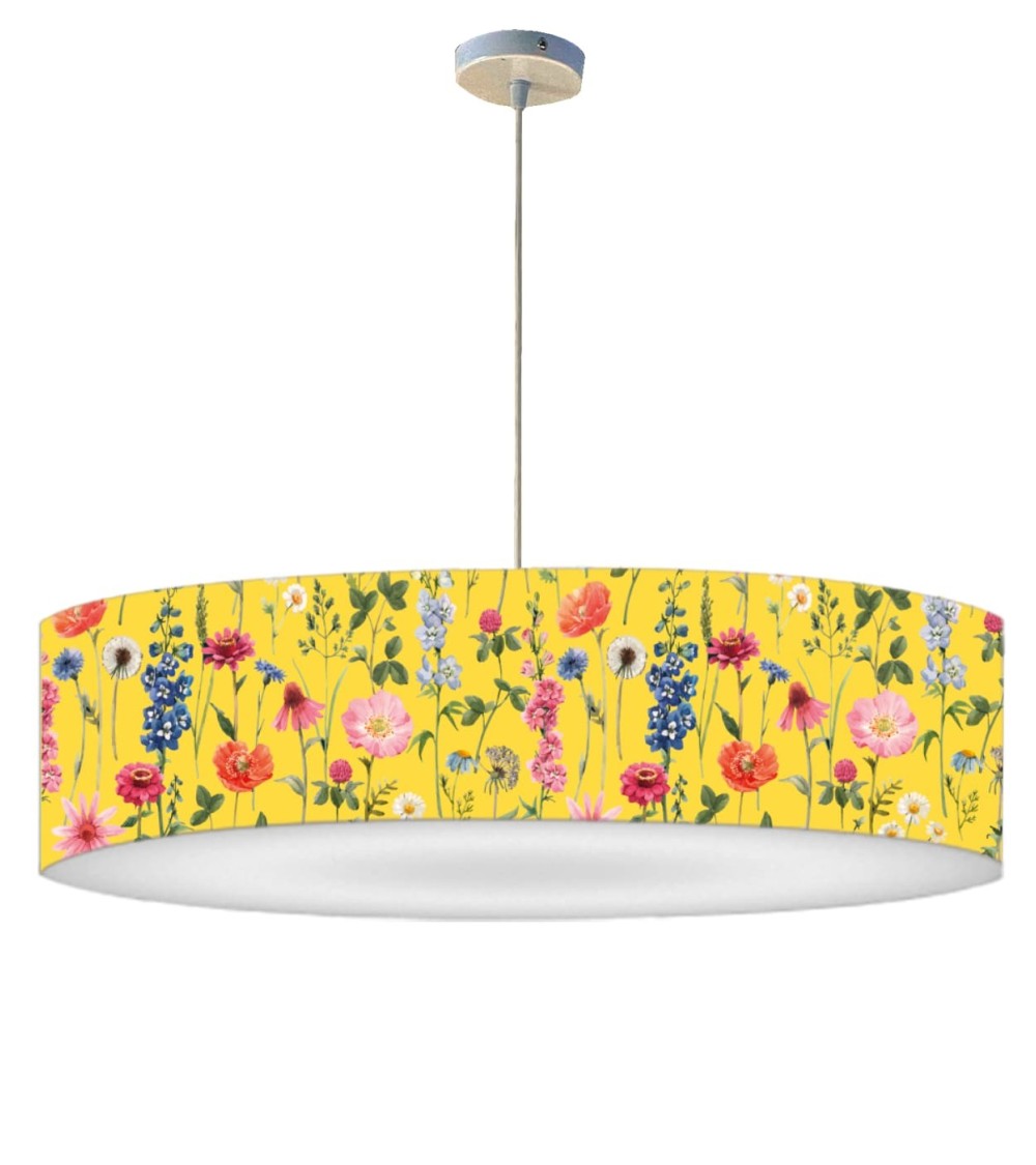 Produits à usage professionnels et particuliers. La Suspension Fleur est une suspension qui convient parfaitement pour les salons, les salles à manger ou les chambres. Elle est dotée d'un abat-jour rond de 60cm de diamètre et 25cm de hauteur, à suspendre au plafond. La suspension est fournie avec un diffuseur pour cacher l'ampoule et un cordon d'alimentation d'une longueur de 100cm. Cette suspension au design tendance et dynamique ajoutera une touche de couleur à votre décoration intérieure. Elle est destinée à un usage intérieur.