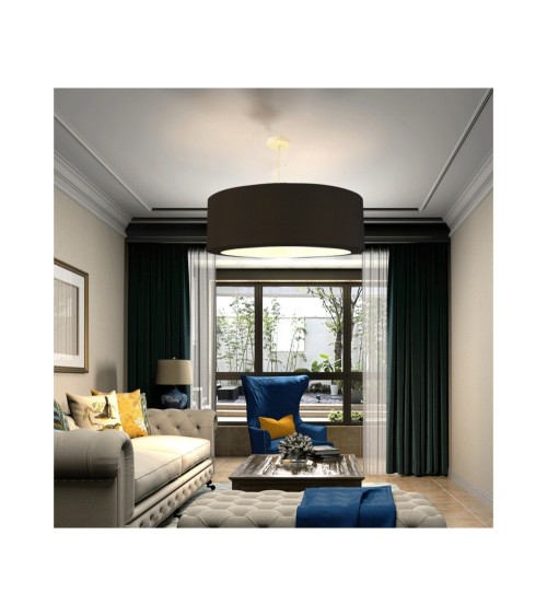 Produits à usage professionnels et particuliers. La Suspension Silvio est une suspension élégante avec un abat-jour rond de 65cm de diamètre et 25cm de hauteur, doté d'un retour de 5cm en bas pour ajouter une touche de sophistication. Elle utilise une douille E27 en position verticale et est fournie avec un cordon d'alimentation de 100cm ajustable en hauteur et une platine en métal. Cette suspension au design tendance et moderne est idéale pour les salons ou les chambres, avec un usage intérieur et un style intemporel qui ajoute une touche de sophistication à votre décoration intérieure. Fabriqué en France avec du tissus classé NF pour une sécurité optimale