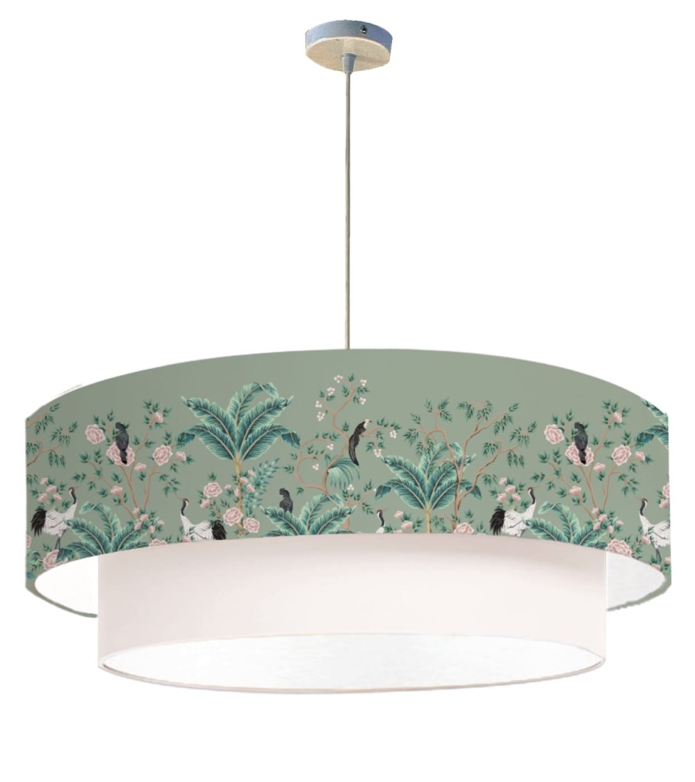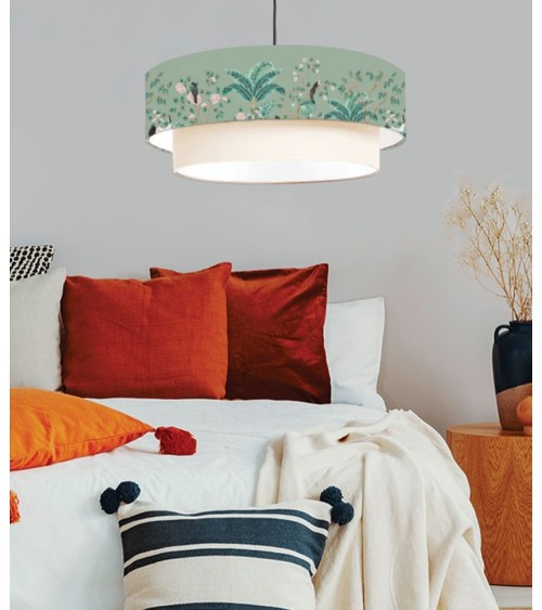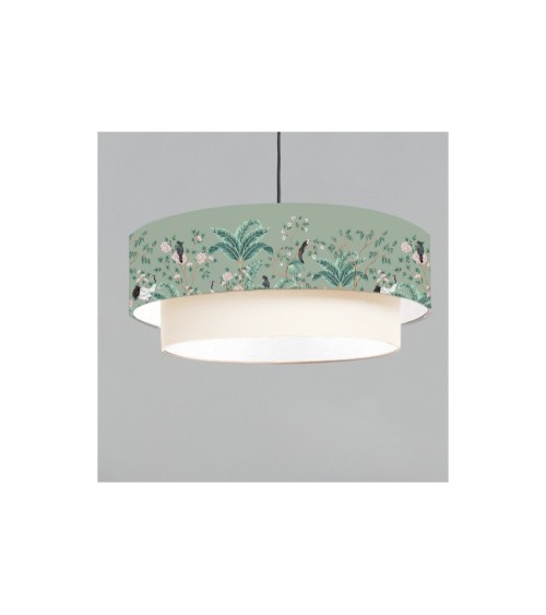 Produits à usage professionnels et particuliers. La suspension double Jungle est un excellent choix si vous cherchez à ajouter une touche de couleur et d'originalité à votre salon, salle à manger ou chambre. Elle est composée d'un abat-jour de 65cm de diamètre et de 25cm de hauteur et d'un autre abat-jour de 50cm de diamètre et de 30cm de hauteur. La suspension a une hauteur totale de 30cm. Elle est fournie avec un diffuseur pour cacher l'ampoule et son câble d'alimentation de 100cm permet une installation facile. Cette suspension est à la fois fonctionnelle et esthétique : elle apportera une lumière agréable tout en ajoutant une touche d'originalité à votre pièce.