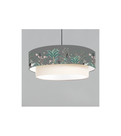 Produits à usage professionnels et particuliers. La suspension double Jungle est un excellent choix si vous cherchez à ajouter une touche de couleur et d'originalité à votre salon, salle à manger ou chambre. Elle est composée d'un abat-jour de 65cm de diamètre et de 25cm de hauteur et d'un autre abat-jour de 50cm de diamètre et de 30cm de hauteur. La suspension a une hauteur totale de 30cm. Elle est fournie avec un diffuseur pour cacher l'ampoule et son câble d'alimentation de 100cm permet une installation facile. Cette suspension est à la fois fonctionnelle et esthétique : elle apportera une lumière agréable tout en ajoutant une touche d'originalité à votre pièce.