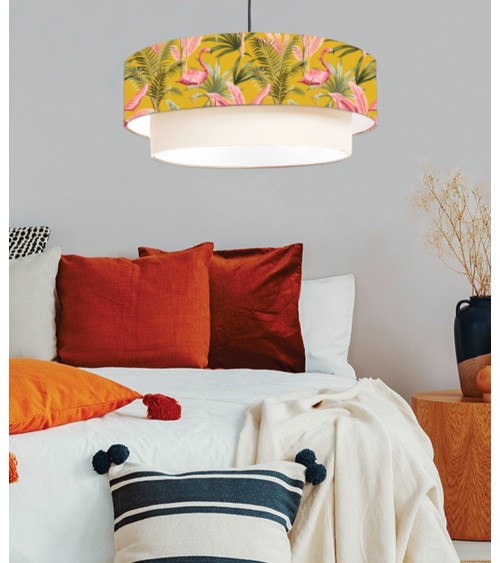 Produits à usage professionnels et particuliers. La suspension double Flamand est un excellent choix si vous cherchez à ajouter une touche de couleur et d'originalité à votre salon, salle à manger ou chambre. Elle est composée d'un abat-jour de 65cm de diamètre et de 25cm de hauteur et d'un autre abat-jour de 50cm de diamètre et de 30cm de hauteur. La suspension a une hauteur totale de 30cm. Elle est fournie avec un diffuseur pour cacher l'ampoule et son câble d'alimentation de 100cm permet une installation facile. Cette suspension est à la fois fonctionnelle et esthétique : elle apportera une lumière agréable tout en ajoutant une touche d'originalité à votre pièce.