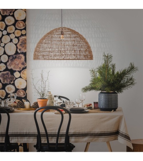 Un charme bohème et un look nature hyper tendance, on craque complètement pour notre gamme de suspensions BALI. Conçue en corde de papier couleur naturelle, cette suspension XXL ne passera certainement pas inaperçue dans votre intérieur et apportera un vent de fraîcheur moderne dans votre décoration intérieure. On adore son abat-jour ajouré qui créera des ombres sur vos murs une fois la nuit tombée : ambiance chaleureuse et cocooning assurée ! Luminaire équipé d'une douille E27 compatible avec une ampoule d'une puissance maximale de 40W (ampoule non incluse). Dimensions : hauteur 45cm x diamètre 80cm x longueur câble 3 mètres. Existe également dans la même collection BALI en diamètre 50 ou 40 centimètres, mais aussi en version corde coloris noir. Les plus du produit : - - Caractéristiques : - Douille : E27 - Puissance : 40W - IP : 20 - Matière : paper