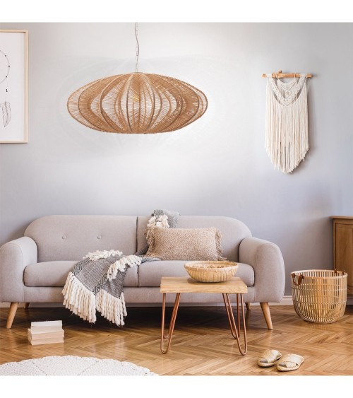 Conçue en rotin naturel, la suspension TERRA et ses 60 cm de longueur offre un beau volume dans une grande pièce. Avec son design ajouré en rotin tressé, la suspension nature TERRA révèle une allure organique sublime. Voilà une structure légère et aérienne qui s'invite avec beaucoup d'allure dans la maison. Très tendance, les matières naturelles insufflent une note pleine de fraîcheur dans nos intérieurs. Grâce à son tressage ajouré, la lumière émise est diffusée dans tout l'espace générant un éclairage chaleureux et agréable. Cette suspension rotin est compatible avec une ampoule E27 de 40 watts. Les plus du produit : Matière naturelle - Effets lumineux - Ampoule à personnaliser Caractéristiques : - Douille : E27 - Puissance : 40W - IP : 20 - Matière : metal