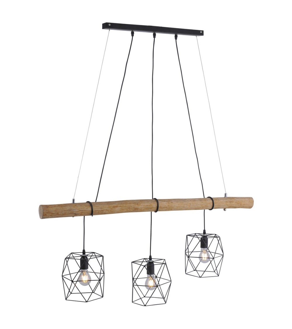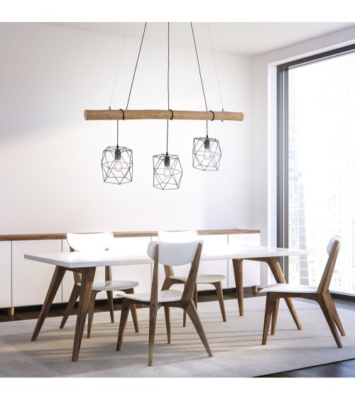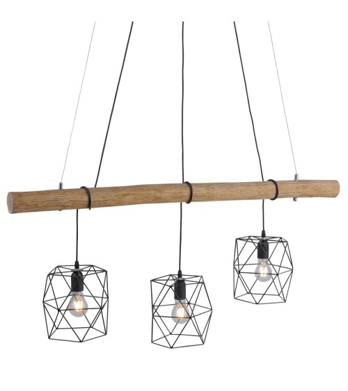 Un charme 100% authentique avec cette belle suspension barre EDGAR ! Conçue en bois naturel, cette suspension possède 3 points lumineux avec une structure ajourée fabriquée en métal noir qui vous procureront une lumière chaleureuse et de belles ombres sur vos murs une fois la nuit tombée. Hyper tendance, la suspension barre EDGAR marie parfaitement la douceur du bois et la touche industrielle hyper moderne du métal. Ce luminaire trouvera sans aucun doute sa place dans votre aménagement intérieur : dans une montée d'escalier avec une belle hauteur sous plafond, dans un salon pour une lumière cocooning ou bien au-dessus de votre table à manger pour illuminer vos moments de partage. Notre astuce déco : optez pour des ampoules avec filaments pour donner une touche vintage à votre suspension. Luminaire équipé de trois douilles E27 compatibles avec 3 ampoules d'une puissance maximale de 60W chacune, soit 3x60W (ampoules non incluses). Dimensions : hauteur 120cm x longueur 120cm x profondeur 20cm. Hauteur réglable. Les plus du produit : Grand format - Matériau résistant - Ampoule déco apparente Caractéristiques : - Douille : E27 - Puissance : 60W - IP : 20 - Matière : BOIS