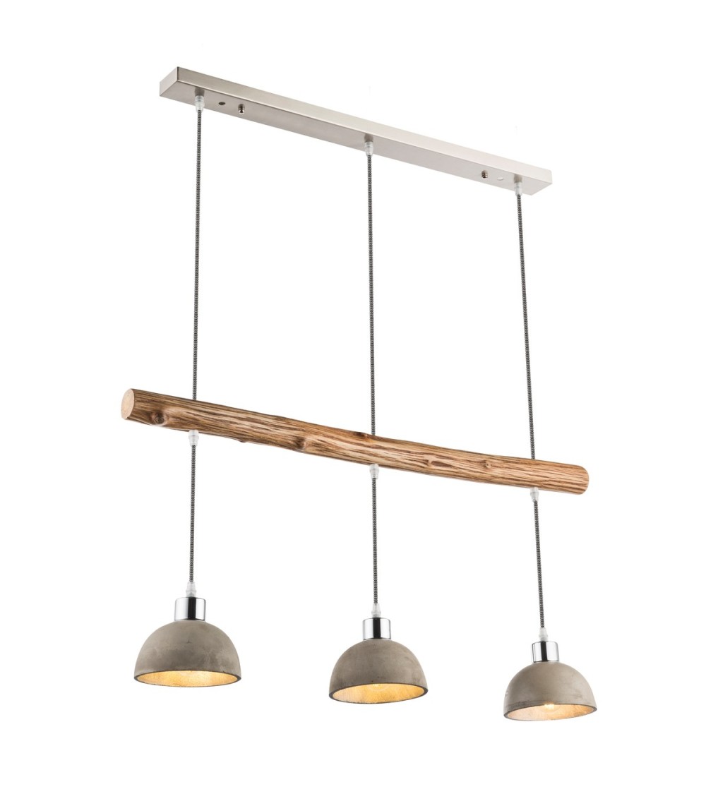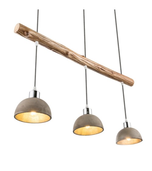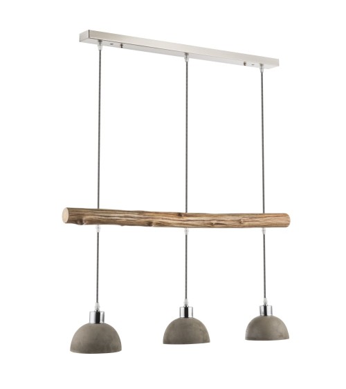 Le béton, c'est canon ! La suspension POOLE, conçue en béton, affiche un look industriel au design minéral très élégant. Cette suspension barre est composée de 3 petits abat-jour dômes en béton coloris gris intense, reliés par une barre en bois brut. l'alliance de ces deux matières premières donne un côté nature très apaisant à cet éclairage déco. Cette suspension béton, qui s'étend sur 85 cm de longueur, viendra éclairer une table à manger rectangulaire avec une lumière douce et chaleureuse. L'intérieur des abat-jour prend un délicat coloris or une fois le luminaire allumé. Cette suspension est compatible avec une ampoule E27 de 60 watts. Les plus du produit : Eclairage homogène - Matériau résistant - Idéal bar/îlot central/table à manger Caractéristiques : - Douille : E27 - Puissance : 40W - IP : 20 - Matière : concrete