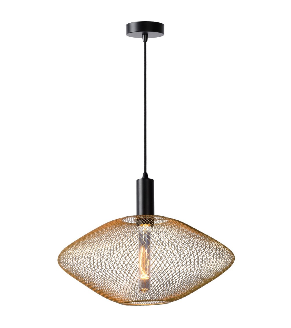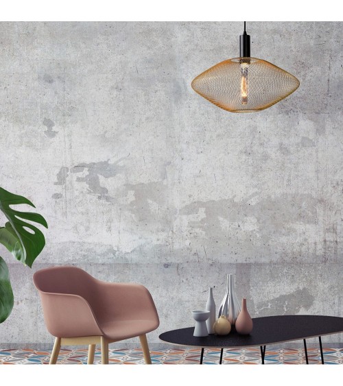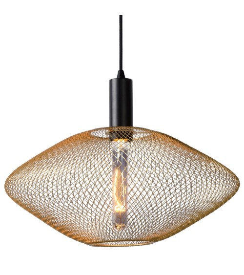 Une forme ovoïde et un tressage de fils métalliques dorés offre à la suspension MESH un charme remarquable. On aime également son joli diamètre de 45 cm qui se prête aussi bien à l'éclairage d'une table à manger que d'une chambre à coucher ou d'un salon. Son design à maillage ajouré permet de diffuser une lumière chaleureuse dans toute la pièce pour créer une belle ambiance lumineuse. Voilà un luminaire de caractère qui adopte tous les styles déco ! Hauteur réglable de 40 à 135 cm. Compatible avec un variateur d'intensité lumineuse. Luminaire équipé d'une douille E27 compatible avec une ampoule d'une puissance maximale de 40W (ampoule non incluse). Nous vous conseillons d'opter pour une ampoule LED en forme de tube. Existe en coloris noir ou doré. Les plus du produit : Matériau résistant - Effets lumineux - Ampoule à personnaliser Caractéristiques : - Douille : E27 - Puissance : 40W - IP : 20 - Matière : metal