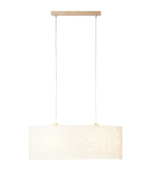 Illuminez votre intérieur avec cette belle suspension de la gamme GALANCE. Ente charme scandinave et look minimaliste, cette suspension se fondra parfaitement dans votre décoration intérieure. Fabriquée en bois naturel, elle possède également un abat-jour conçu en tissu blanc pour vous procurer un éclairage homogène et chaleureux au quotidien. On adore : les motifs géométriques qui habillent cet abat-jour pour lui donner une touche scandinave hyper moderne et complètement tendance ! Cette suspension trouvera sans aucun doute sa place dans une entrée, un salon ou pourquoi pas même une chambre. Luminaire équipé d'une douille E27 compatible avec une ampoule d'une puissance maximale de 40W (ampoule non incluse). Dimensions : hauteur 118cm x largeur 70cm x profondeur 26cm. Existe également dans la même collection GALANCE en version suspension plus petite, lampe à poser, spot mural ou bien lampadaire. Les plus du produit : Matière naturelle - Matériau résistant - Ampoule à personnaliser Caractéristiques : - Douille : E27 - Puissance : 40W - IP : 20 - Matière : BOIS