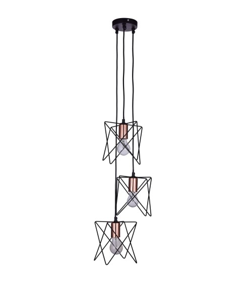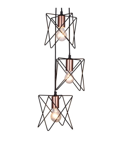 Véritable must-have pour une décoration d'intérieur contemporaine, cette suspension moderne ORLANDO vous séduira par son design recherché. Conçue en métal couleur noir mat, elle trouvera parfaitement sa place dans votre aménagement : au-dessus de votre table à manger pour illuminer vos moments en famille ou entre amis, ou bien dans une pièce avec une belle hauteur sous plafond pour apporter charme et cachet (hauteur 123cm). Ce luminaire dispose de trois points lumineux E27 compatibles avec des ampoules d'une puissance maximale de 60W chacune (3x60W - ampoules non incluses). Il vous offrira ainsi un éclairage intense et harmonieux, pour instaurer une ambiance conviviale et chaleureuse irrésistible. Cette suspension aux abat-jours filaires et aux ampoules apparentes vous laissera le choix de personnaliser vos sources lumineuses pour correspondre au mieux à vos envies (ampoule déco, ampoule à filaments mais aussi couleur de la lumière, intensité d'éclairage). On aime : ses finitions en couleur cuivre pour un style industriel inimitable ! Les plus du produit : 3 sources lumineuses - Hauteur ajustable - Ampoule à personnaliser Caractéristiques : - Douille : E27 - Puissance : 60W - IP : 20 - Matière : metal