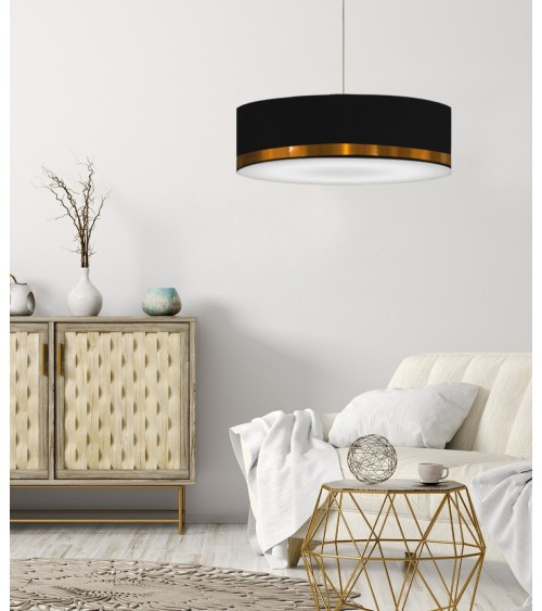 Produits à usage professionnels et particuliers. La Suspension Jonc est confectionnée avec du tissu de qualité classé NF et un intérieur en polyphane blanc. Elle fabriqué dans nos ateliers de Wattrelos et à la main. Elle est dotée d'une finition de qualité et agrémentée d'un jonc en PVC métallisé pour une touche de modernité et d'élégance. Cette suspension convient parfaitement pour être installée au-dessus d'une table, dans une cuisine ou dans un salon. Elle mesure 65 cm de diamètre et 25 cm de hauteur et est fournie avec une platine de plafond, un câble de 80 cm et une douille E27. Elle nécessite une ampoule LED avec un culot E27 et elle est conçue pour un usage intérieur uniquement.