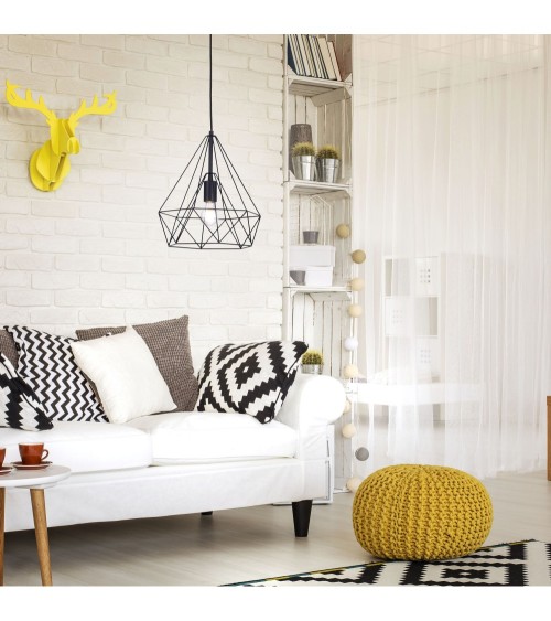 Apportez un vent de modernité dans votre aménagement intérieur avec cette belle suspension SKELETTON. Sa structure filaire en forme de cage conçue en métal noir apportera une belle touche industrielle à votre décoration. Idéale dans une entrée ou un couloir pour un éclairage plus fonctionnel, elle trouvera également sa place dans un salon ou une salle à manger pour illuminer vos moments de vie. Notre astuce déco : pour un design 100% factory, accrochez cette suspension en duo ou même en trio ! Avec sa structure ajourée, elle laissera passer la lumière pour un rendu lumineux sublime. Luminaire équipé d'une douille E27 compatible avec une ampoule d'une puissance maximale de 60W (ampoule non incluse). Dimensions : hauteur 120 cm x diamètre 32 cm. Les plus du produit : Eclairage homogène - Lumière chaude - Effets graphiques Caractéristiques : - Douille : E27 - Puissance : 60W - IP : 20 - Matière : metal