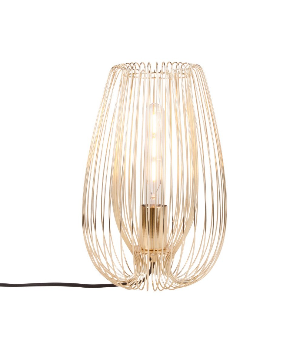 Envie d'habiller votre intérieur d'un luminaire chic et moderne ? La lampe à poser en métal Lucid est là pour vous aider à créer une décoration qui en jette ! Leitmotiv présente ici, une création unique qui tient son originalité de son abat-jour en fils de métal doré et sa forme ovale épurée.Elle diffuse une lumière bien répartie et chaleureuse pour sublimer toute la pièce. Jolie, élégante et intriguante, elle devient une pièce remarquable que tout le monde aura envie de contempler dans un bureau ou dans une chambre au style contemporain. Cette lampe stylée est proposée dans une jolie couleur dorée, hyper tendance ! Fonctionne avec une ampoule E27, Max. 40 W non incluse.