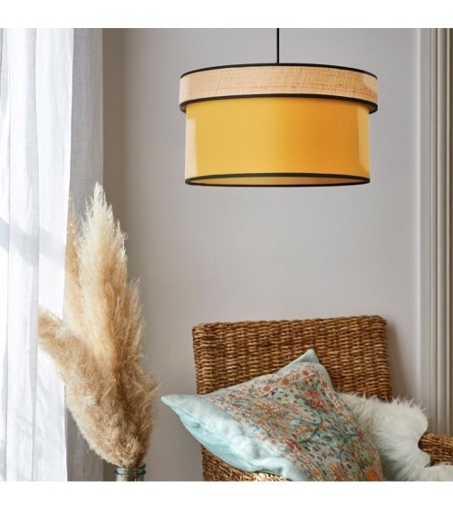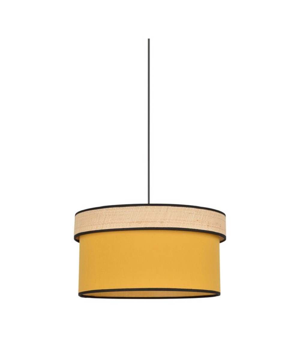 Suspension de la collection Amman éditée par corep composée d'une rosace de plafond, d'un cordon d'alimentation et d'un abat-jour cylindrique habillé de toile de coton et agrémenté d'un cerclage de diamètre supérieur en raphia tressé, l'ensemble est re-haussé par des ganses de coloris noir.Graphique et tendance, la collection Amman se décline en diffréntes finitions raffinées.Ampoule : 100W max - E27 (non fournie).