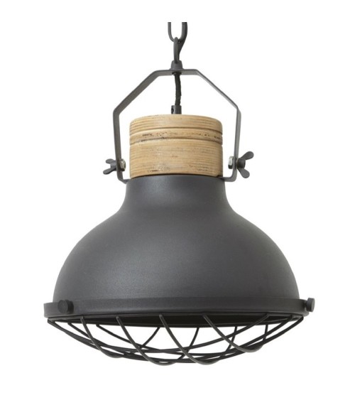 Suspension de la collection Emma éditée par Brilliant composée d'une rosace de plafond, d'un cordon d'alimentation et d'une chaine d'éligue métallique supportant un abat-jour agrémenté d'un cylindre de bois naturel et d'un diffuseur coupole en métal équipé d'une grille de protection décorative.La collection Emma propose un style industriel et brut particulièrement tendance ; cette série se décline en différents modèles complémentaires.Ampoule : 60W - E27 (non fournie).