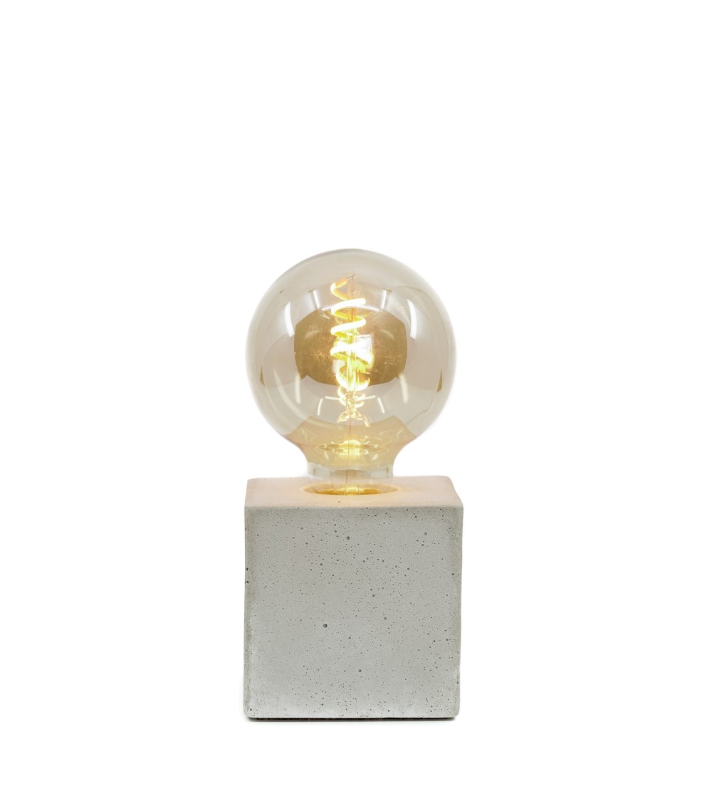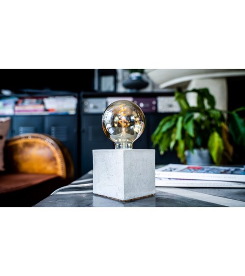 Cette lampe béton, modèle Cube, est fabriquée dans latelier de Junny à Montargis (45). Afin d'obtenir un béton coloré, la créatrice mélange son béton dans la masse à des pigments naturels. Le béton est protégé par une cire à la finition satinée qui apporte protection et brillance au béton coloré. Les éléments qui composent la lampe sont tous issus dentreprises Françaises. Cette lampe en béton, modèle Cube, est 100% made in France et fabriquée de manière artisanale. La lampe en béton cube est un modèle de luminaire béton aussi classique que moderne. Cette lampe au socle en béton à la forme cube est un incontournable de la décoration intérieure. Le socle est un cube en béton coloré dans la masse de 8 cm x 8 cm. Sa forme et sa taille, permettent à ce luminaire béton d'être positionné dans toutes les pièces de la maison. Cette lampe cube béton vous servira aussi bien de lampe à poser dans votre séjour, que de lampe de chevet ou encore de lampe de bureau. Son ampoule LED ronde à filaments, vient renforcer l'esprit industriel de la lampe béton. Cette ampoule, à la finition ambrée, procure une luminosité chaleureuse.