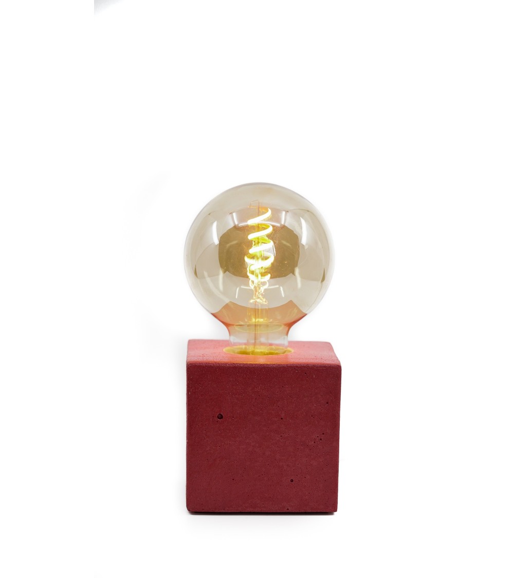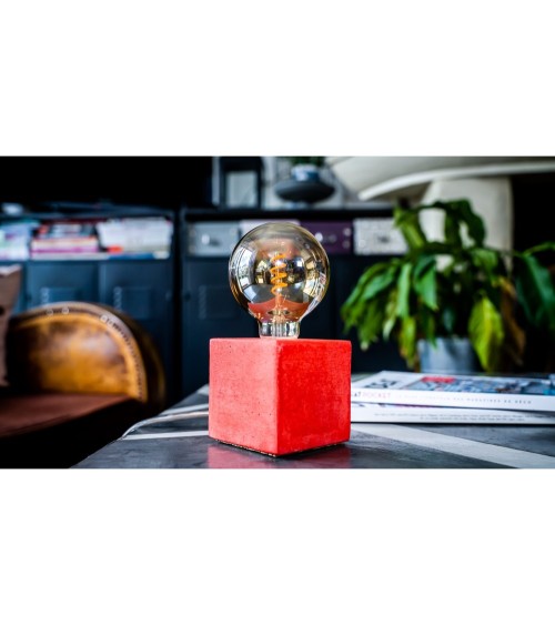Cette lampe béton, modèle Cube, est fabriquée dans latelier de Junny à Montargis (45). Afin d'obtenir un béton coloré, la créatrice mélange son béton dans la masse à des pigments naturels. Le béton est protégé par une cire à la finition satinée qui apporte protection et brillance au béton coloré. Les éléments qui composent la lampe sont tous issus dentreprises Françaises. Cette lampe en béton, modèle Cube, est 100% made in France et fabriquée de manière artisanale. La lampe en béton cube est un modèle de luminaire béton aussi classique que moderne. Cette lampe au socle en béton à la forme cube est un incontournable de la décoration intérieure. Le socle est un cube en béton coloré dans la masse de 8 cm x 8 cm. Sa forme et sa taille, permettent à ce luminaire béton d'être positionné dans toutes les pièces de la maison. Cette lampe cube béton vous servira aussi bien de lampe à poser dans votre séjour, que de lampe de chevet ou encore de lampe de bureau. Son ampoule LED ronde à filaments, vient renforcer l'esprit industriel de la lampe béton. Cette ampoule, à la finition ambrée, procure une luminosité chaleureuse.
